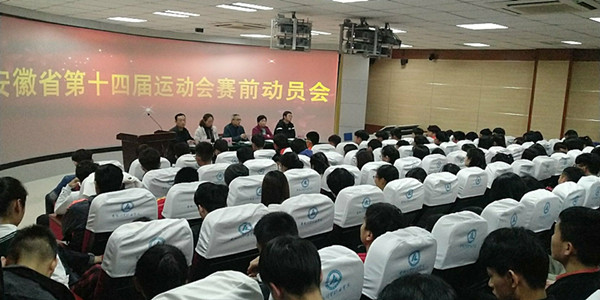 3月23日中午,学校在3D实训室召开安徽省第十四届运动会赛前动员会。校长助理邓庆安、学生处处长薛卫敏、教务处副处长濮光宁、公共教学部主任王静出席会议。全体教练员和运动员参加了会议。