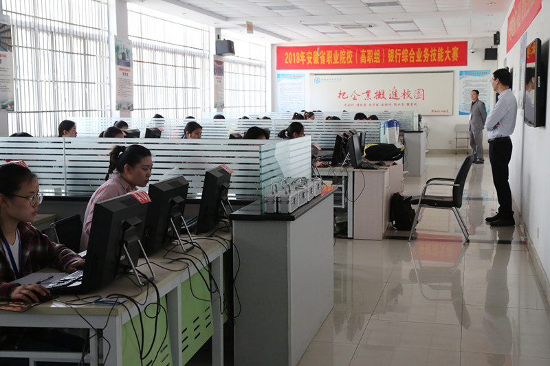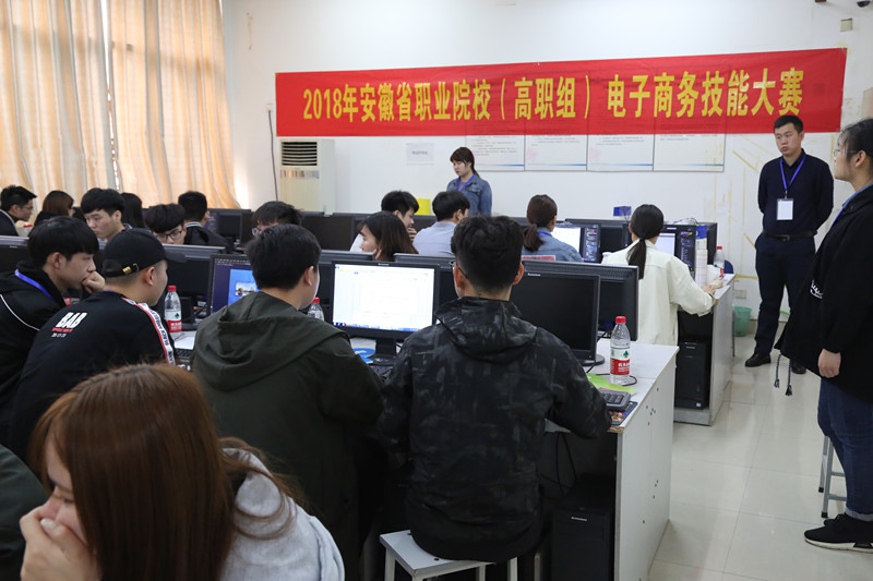 3月31日,省教育厅、省经信委、省人社厅主办,学院承办的2018年安徽省职业院校技能大赛(高职组)电子商务技能、银行综合业务技能2个项目的比赛在实训楼举行,全省50所高职院校的200名选手参加了电子商务技能竞赛,22所高职院校的88名选手参加了银行综合业务技能竞赛。