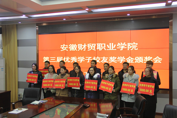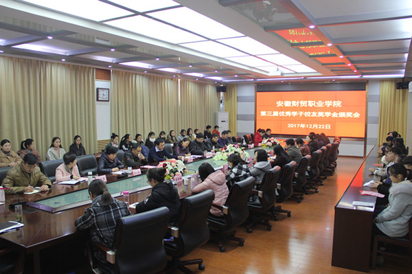 12月22日下午,学校第三届优秀学子校友奖学金颁奖会在行政楼第四会议室举行。副校长罗虹、校长助理吴晓光,83届棉检班校友嘉宾合肥徽之王家居有限公司董事长戴传勇、安徽省供销社机关服务中心副主任叶明贵、淮南市供销社副调研员张云峰、合肥庐棉棉业有限责任公司经理赵淮、滁州华宇纺织有限公司董事长李邦国出席颁奖会。学生处、财务处、团委负责人,各学院党总支书记、副书记、学生秘书,以及获奖学生及受助学生代表一同参加了颁奖会。颁奖会由学生处处长薛卫敏主持。