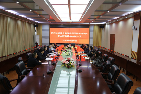 11月14日下午,澳大利亚悉尼国际管理学院亚太区总监Jakie女士一行到访我校,副校长胡戴新代表学校热情接待,双方进行了座谈交流。国际交流中心负责人、办公室相关人员陪同参加座谈。
