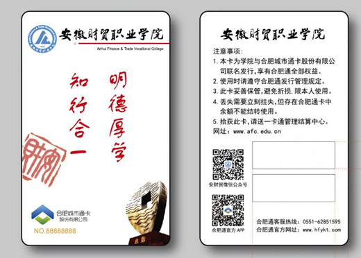 我校是安徽省首家将校园一卡通和城市交通卡整合的高校,整合后的校园卡有三大特色: