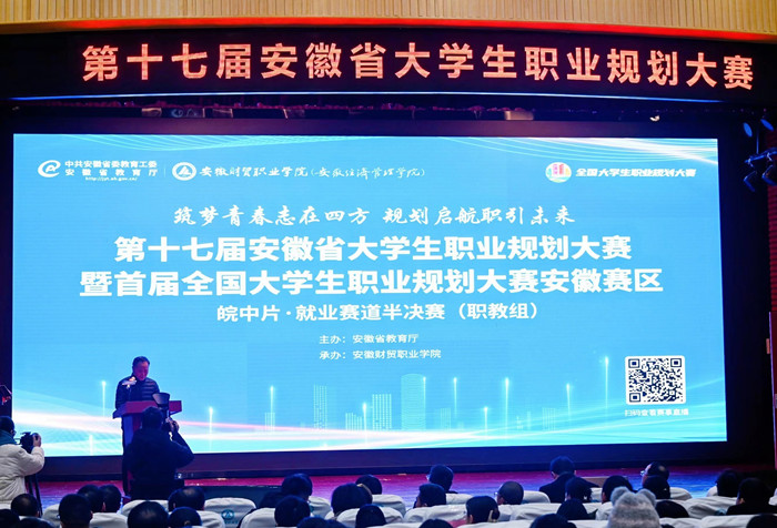 12月22日,第十七届安徽省大学生职业规划大赛暨首届全国大学生职业规划大赛安徽赛区皖中片就业赛道半决赛(职教组)在学校成功举办。大赛以“筑梦青春志在四方,规划启航职引未来”为主题,由安徽省教育厅主办、学校承办。重庆市大学中专毕业生就业指导服务中心主任唐雪平,安徽省大中专毕业生就业指导中心主任张秋田,学校领导张志祥、何翔、胡戴新、罗虹出席开幕仪式。