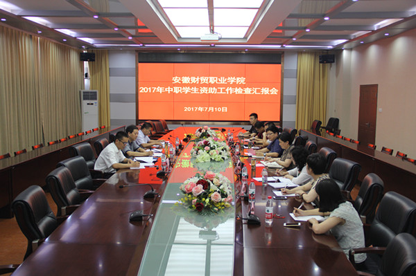 7月10日下午,由宿州市学生资助管理中心主任孙贵勤、宿州市学生资助管理中心葛宪金、吴茂生组成的中职学生资助工作检查组来我院检查指导工作。学院在行政楼二楼会议室召开中职学生资助工作汇报会,学院院长助理吴晓光出席汇报会,学生处、财务处、中专部等相关部门负责人参加汇报会。会议由吴晓光主持。