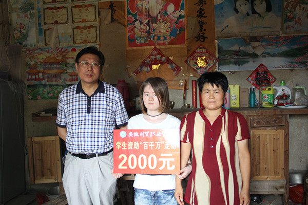 7月12日,学院副院长胡戴新率领学生资助“百千万”走访第四组成员,前往肥东县陈集镇肖圩村走访慰问经济困难学生家庭,并送去慰问金。