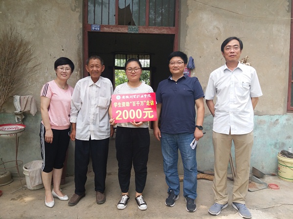 7月15日至16日,学院院长助理吴晓光率学生资助“百千万”走访第六组成员,深入五河和凤阳等地,走访困难学生家庭并送去慰问金。学生处副处长胡宏萱、云桂信息学院副院长姚成随行。