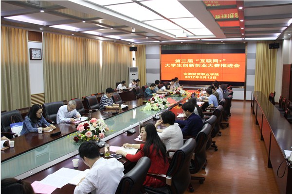 招生就业处副处长许勇解读了《关于举办安徽财贸职业学院第三届“互联网+”大学生创新创业大赛的通知》,补充说明了参赛对象和项目挖掘等,向各二级学院的比赛组织工作提出建议。