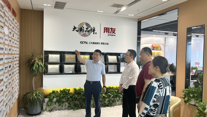 王小明在公司文化展区介绍了用友、新道公司的发展历程、行业荣誉等,并陪同参观了公司的办公区域等场所。随后,王海龙对学校的办学特色、人才培养及中远期发展规划等方面作了介绍,并向贵公司在我校产教融合建设方面作出的努力表示感谢。他指出,用友、新道都是行业头部企业,拥有较强的行业影响力和业态资源,是学校产教融合的重要合作伙伴,双方应积极在更大宽度和更强深度上谋划布局,加快推进现代职业教育体系建设,力争打造产教融合典范。双方就开放型区域产教融合实践中心、特色班建设、AI赋能课程改革、虚仿基地建设等构想进行了深入交流,并达成初步合作意向。