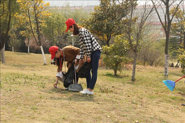 参加校园环保志愿活动的团学干部统一佩戴了小红帽和工作证,配备清理工具。大家目标明确,分工行动,相继在校园山坡、操场、篮球场、学生公寓周边等场地开始垃圾清扫工作,不放过任何死角。当发现草丛中有瓜子壳、甘蔗渣、烟头等不易清扫垃圾时,他们用手一点一点的捡拾。两天的时间里,团学志愿者们放弃了中午休息的时间,用劳动换来了校园的清洁,用行动为他人创造舒适、优雅的学习环境,虽然很疲惫,但难掩心中的欣慰与喜悦。
