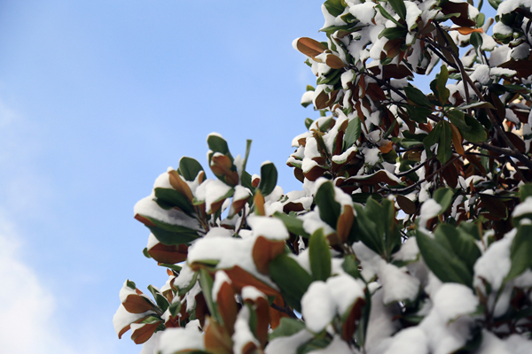 初雪过后,绵绵白雪装点着美丽校园,琼枝玉叶,皓然一色,一派瑞雪丰年的喜人景象。