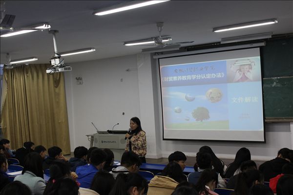 朱熹文旅学院2016级辅导员在主题讲座中添加了财贸素养学分活动的介绍,为新生详细解读了财贸素养学分活动的文件要求、主题板块、加分政策、操作流程等。表示,财贸素养学分是财贸素养教育的重要载体,是五阶段五主题教育的拓展和延伸,广大同学要以财贸素养学分活动为契机,深入进行自我学习和自我教育,提升个人品德意志的修炼。