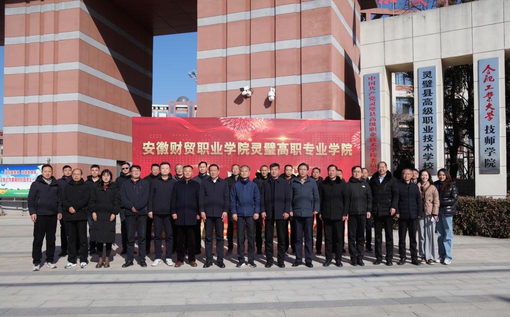 1月10日上午,安徽财贸职业学院与灵璧县高级职业技术学校合作建设的高职专业学院、高职中专分校揭牌仪式在灵璧县高级职业技术学校隆重举行。我校党委书记张志祥,党委委员、副校长胡戴新,灵璧县委教育工委委员仲凯,灵璧县高级职业技术学校党委书记潘明志,党委副书记、校长尹成新等出席仪式。