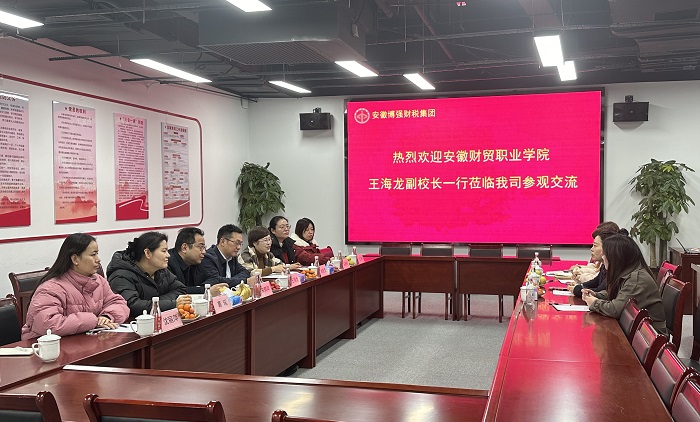 2月21日上午,学校党委委员、副校长王海龙带队赴安徽博强财税服务集团开展走访调研工作,财会金融学院相关负责人随行参加。