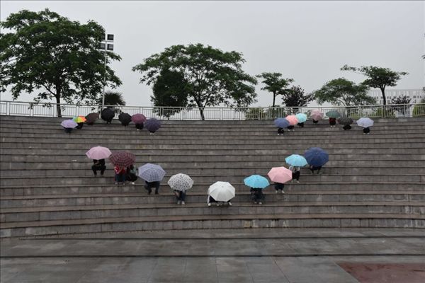 虽然微笑日当天细雨蒙蒙,但是同学们的微笑热情不减,不少同学主动在宣传横幅上签名,并争当微笑的传递者。心理协会的同学们还在学院露天剧场玩起了行为艺术,他们通过合作排出了笑脸图案和爱心图案,迎接世界微笑日的到来。