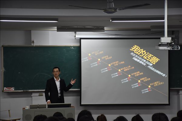 讲座后,蒋经纬校友还以学长的身份,向在场的同学分享了他关于专业课程学习与多年营销工作的心得,并接受了同学们的提问。