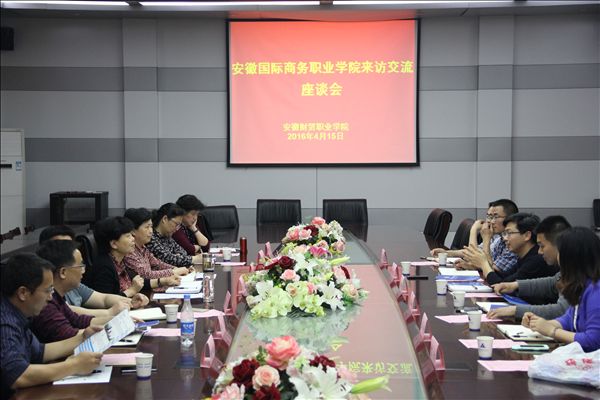 4月15日下午,安徽国际商务职业学院党委副书记王孝胜一行六人莅临我院,考察交流辅导员队伍建设、学生宿舍管理、就业指导及创新教育等方面的工作,学院党委副书记、副院长胡善珍热情接待了来访的宾客,双方进行了亲切友好的座谈交流,学生处、招生就业处、总务处、财税金融系、电子信息系等部门负责人参加了座谈会。