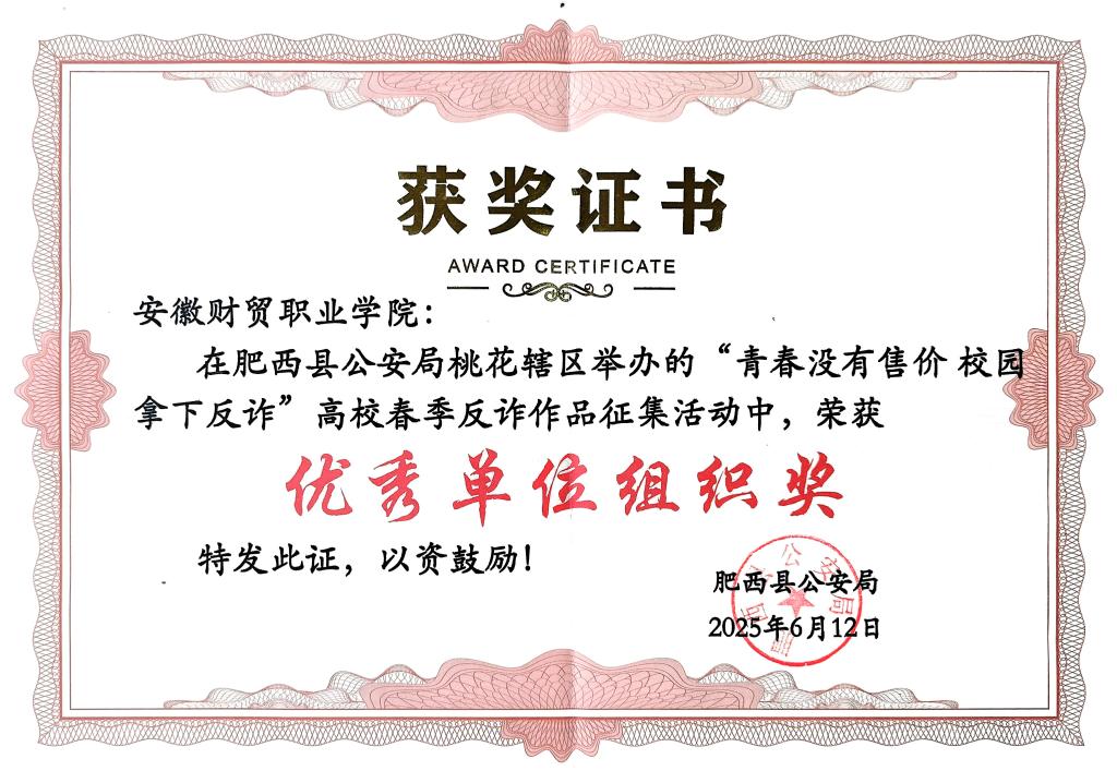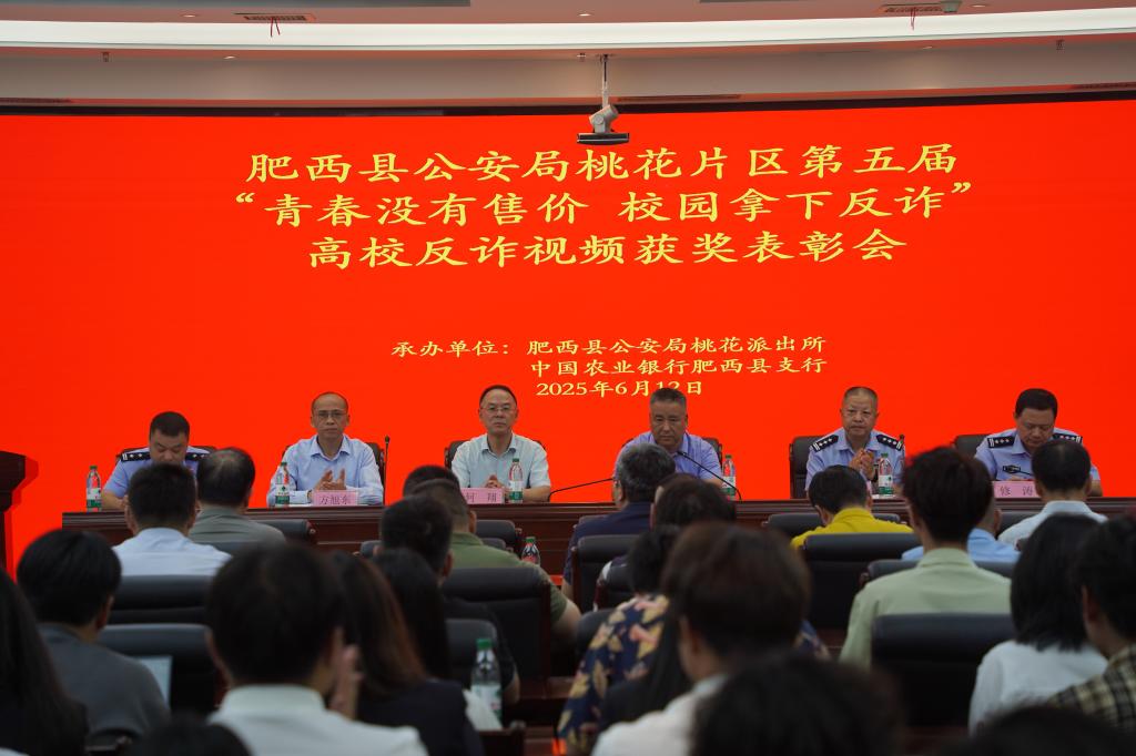 6月12日,肥西县公安局桃花片区第五届“青春没有售价,校园拿下反诈”高校反诈视频获奖表彰会在我校隆重开展。此次活动旨在深化高校反诈宣传教育,提升青年学生防骗意识与能力,筑牢校园反诈防线。