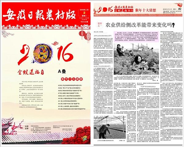 据报社反馈,这期新年特刊出刊后,在安徽省内的广大农村地区反响良好,很多基层“三农”工作者和农民打电话到报社表示读懂了政策之后,下一步需要调整种植结构,跟上好形势。