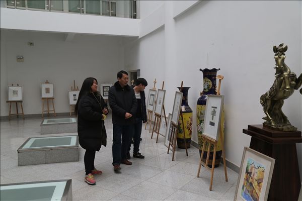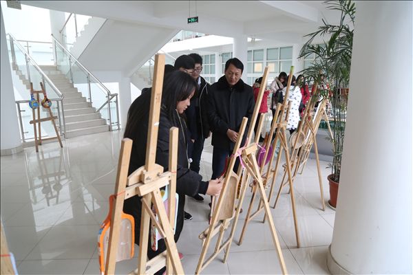 12月21日下午,党委书记孙永来到位于图书信息中心二三楼艺术设计系师生书画展区,饶有兴致地参观了2014-2015级学生的绘画和设计作品展,并不时与学生交谈,了解他们的学习与生活情况,并勉励在场的同学们要刻苦学习,多深入基层、深入生活,丰富创作内容,激发创作灵感,运用灵感创作更具艺术价值的艺术作品。