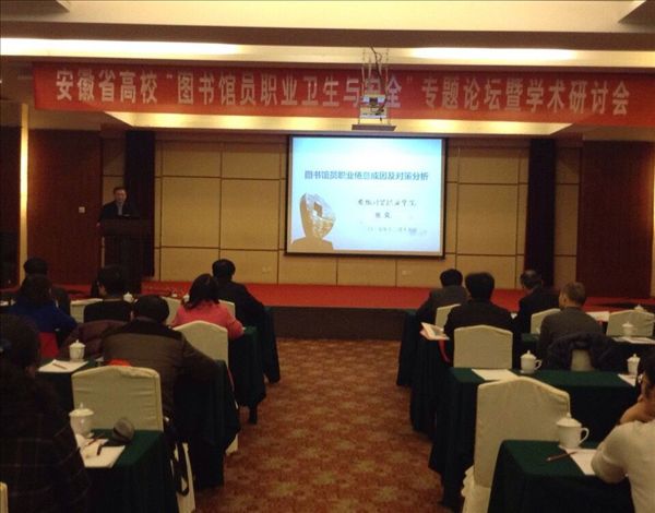 此次论坛就“馆员职业危害因素、预防控制措施”、“馆员职业卫生突发事件与应急响应”、“馆员心理健康、职业倦怠等方面的研究”、“馆员职业卫生教育与职业健康促进”、“图书馆员职业卫生与安全”等相关问题展开讨论,并邀请国内图书馆界专家、职业病防治专家作专题学术讲座。安徽省教育厅高教处副处长童兆胜、安徽省文化厅公共文化处副处长何颂冰、安徽省高校图工委秘书长储节旺、安徽医科大学副校长胡志应邀出席会议并讲话。