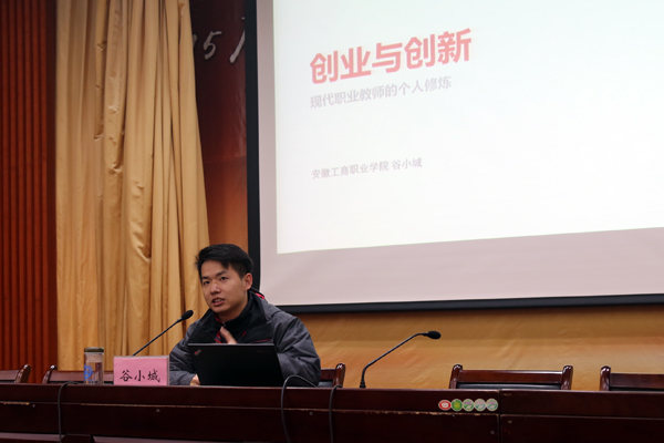 作为制作发布安徽省职业技能类在线课程的第一人,谷小城老师与现场教师们分享了教师职业能力特别是教学能力提升的两大法则——创业与创新。他在讲座中表示,在国家大力提倡双师型教师队伍和提升教师信息化水平的政策引导下,教师个人的职业修炼可以从创业和创新两个角度实现突破。谷小城指出,教师以企业培训讲师、企业咨询顾问或创办企业等形式真实参与企业的生产、管理流程,才是修炼双师型教师的内驱动力;契合时代需求,打造、建设职业特色的网络课程才是高职院校教师职业能力、服务社会水平的彰显和展示。