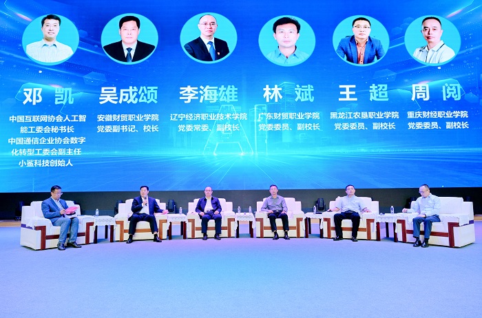 会议举行智慧财经专委会智库建设工作成果推介,吴成颂主持高职业财数据应用与管理专业人才培养方案研究成果发布暨专业教学资源建设及研究项目。会议同期举办第八届智慧财经与制造服务业论坛,以“生成式AI新技术引擎:赋能‘双高’建设与制造服务业新生发展”为主题,探索人工智能赋能职业教育的具体实践。吴成颂受邀在“生成式人工智能赋能职业教育高质量发展”圆桌论坛上,以《新质生产力下财经院校的发展实践与探索》为题,从推进教育数字化和培育数字人才取得的成效、聚力构建“教-学-管-评-用”五位一体的智能矩阵、校企深度融合的人工智能复合型人才培养等三个方面,探讨了学校在财经高职教育促进新质生产力发展方面的经验做法与下一步工作思路。