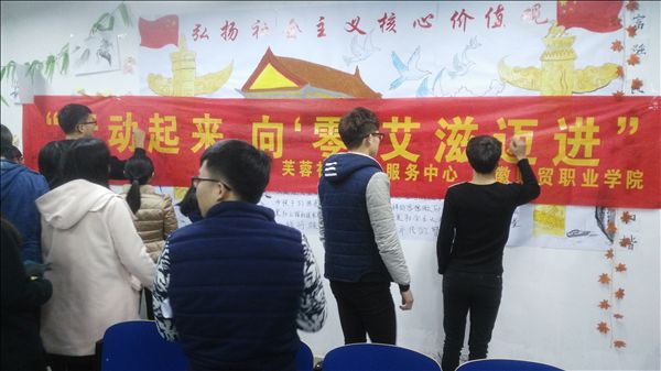 芙蓉社区卫生服务中心公共卫生科科长郜阿满医生介绍了“世界艾滋病日”的来历及艾滋病疫情传播情况、传播途径及预防等相关医学知识;号召大学生应该注意个人卫生,洁身自爱、做好预防措施,同时接受相关的知识教育并向身边的人宣传防艾常识。讲座结束后,同学们还佩戴宣传红丝带,并在“行动起来,向‘零’艾滋迈进”主题横幅上签名承诺,表示了共同防治艾滋病,为实现健康中国梦努力奋斗的决心和勇气。