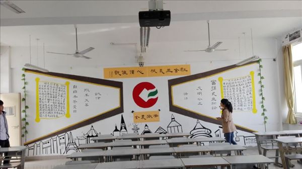 活动自10月上旬布置以来,历时近一个月,各班级从文字到绘画、从标题到标志,完成了一面面风采各异的文化墙,不仅充分展示了社会主义核心价值观的内容,也融入了专业特色和班级文化。
