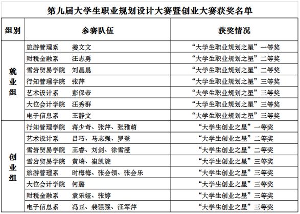 最终,旅游管理系选手姜文文荣获职业规划设计大赛一等奖,行知管理学院蒋少奇团队获得创业组的一等奖。