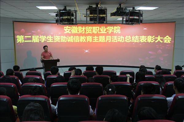 会上,王学峰宣读了《关于表彰学院第二届“诚信自强之星”的通知》的文件,艺术设计系王路娟同学作为受助学生代表发言,以自身的经历,发自肺腑地表达了对国家、对学院的感激之情,并立志发奋图强,刻苦学习,用实际行动去回报社会,报效祖国。