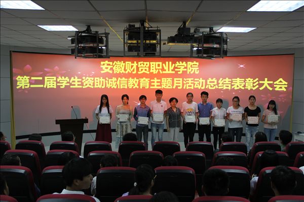 今年的诚信教育月活动中,学院举办了诚信教育宣誓仪式、诚信签名活动、诚信金融知识讲座、学院十大诚信自强之星评选表彰、“大学生自立自强、励志成才、报效祖国”演讲比赛、“资助政策、助我飞翔”征文比赛、诚信座谈会等活动,参与学生达到一万余人次。