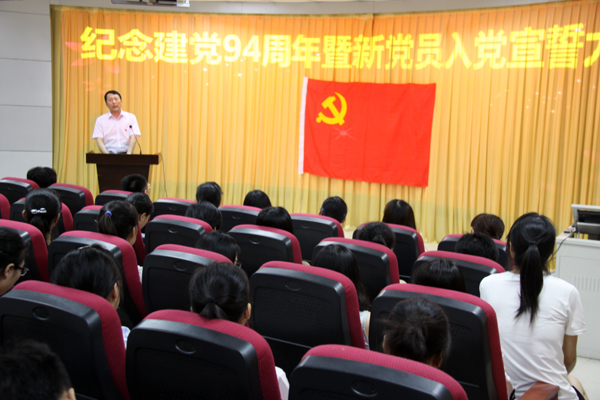 在中国共产党成立94周年的光荣日子里,7月1日,学院举行庆祝建党94周年暨新党员入党宣誓大会。党委书记孙永,党委副书记、副院长胡善珍,院长助理罗虹出席大会,组织人事处、学生处、团委、各党总支(支部)负责人及学生秘书、专职辅导员等参加大会。