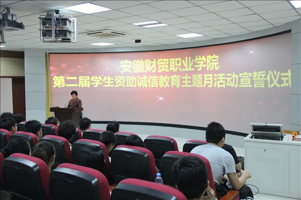 学生处处长薛卫敏介绍了国家资助政策体系及我院学生资助工作的开展情况,强调了开展学生资助诚信教育的重要性,坚持资助与育人相结合,完善资助育人体系,紧紧围绕“诚实守信、自强不息、励志成才”的活动主题,在全院学生中开展全方位、多层面的感恩教育、诚信教育、励志教育活动,传承中华美德,弘扬徽商精神,深化财贸素养教育,培养学生诚信品格,塑造学生诚信人生,构建以诚信为荣的校园文化氛围,打造树诚信校风、建诚信校园、做诚信学子的资助育人新常态,推进我院学生资助工作再上新的台阶。