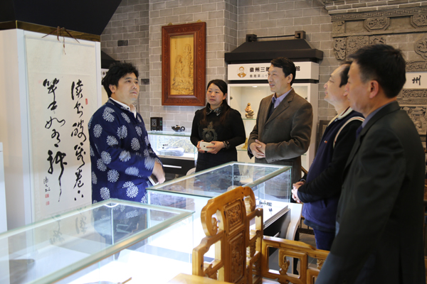 孙永一行会见了该馆馆长查嵘、副馆长徐鸿建,听取了查嵘及其企业关于徽派艺术品创作和流通的介绍,并参观了查嵘创作的砖雕、石雕、木雕作品。