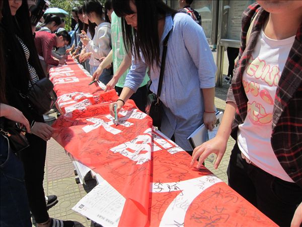 4月23日是第20个世界读书日,当天中午,读书协会在学院食堂东门举办了“书香润泽校园阅读丰富人生”主题签名活动,希望通过此项活动加强对世界读书日的宣传,吸引广大师生走进图书信息中心,通过阅读丰富自己的心灵世界,在提升文化修养和人文素养的同时营造浓厚的校园文化氛围,促进优良学风校风的养成,推进文明校园、和谐校园建设。