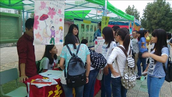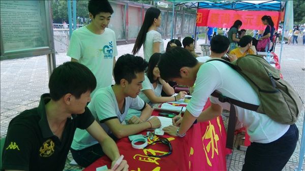 今年社团招新日安排在9月26-27日,读书协会的成员们积极主动,早早布置好招新点,在活动现场,悬挂会旗,安放协会简介展板,张贴介绍社团历年举行的大型活动的海报,吸引了不少新生的注意。招新过程中,会员们个个面带微笑,热情洋溢,耐心给学弟学妹们介绍社团概况及活动内容。据悉,在短短两天的招新活动中,读书协会收到了来自各院系451名同学的报名自荐信,其中150位同学通过第一轮面试。