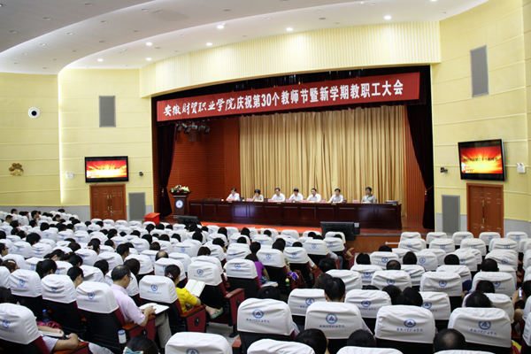9月10日,学院全体教职工齐聚一堂,共同庆祝第30个教师节。安徽省供销社党组成员、理事会副主任闫铁力,人事教育处处长曹斌及学院领导班子全体成员出席庆祝大会,学院党委副书记、副院长胡善珍主持大会。