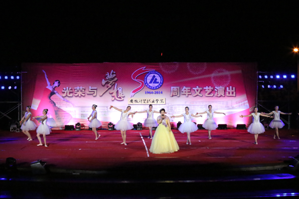 学院学生合唱团的合唱《安财贸之歌》、《在灿烂的阳光下》拉启了晚会的序幕,“在那挺拔的蜀山脚下,在那灵秀的巢湖岸边,有我们美丽的校园”,悠扬嘹亮的歌声响彻校园,抒发了莘莘学子对学院的热爱;歌舞《生日快乐》、歌舞《绿叶对根的情意》、诗朗诵《财贸五十年》、舞蹈《红旗飘飘》,为学院五十华诞献上了浓浓的祝福;现场访谈《追忆往昔》、师生相聚互动环节勾起了校友们对青春时代的追忆,散发着别样的温馨;舞蹈《阳光路上》、小品《摄影爱好者》、歌曲《我相信》展现了青年师生朝气蓬勃的精神风貌;舞蹈《算盘与键盘的穿越》、茶艺表演《香茗与舞蹈的邂逅》彰显了学院传承徽商文化、致力特色人才培养的办学理念。晚会在歌舞《春天的芭蕾》欢乐和谐的氛围中落下帷幕,现场三千余名师生、校友共同度过了一段美好而难忘的时光。