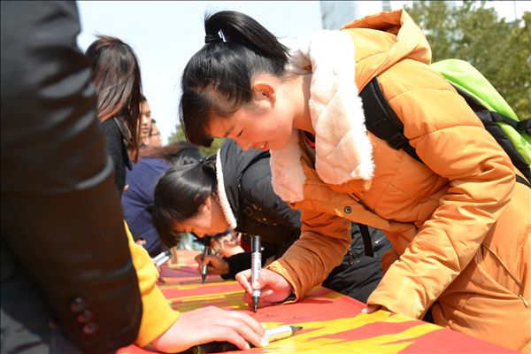 3月3日中午,学院西教学楼西侧宣传栏前,学院团委组织的“遵守校规校纪、树立文明新风、创建无烟校园”集体签名活动,吸引了众多同学的注目和签名,也正式宣告学院第七个安全文明活动月拉开了帷幕。