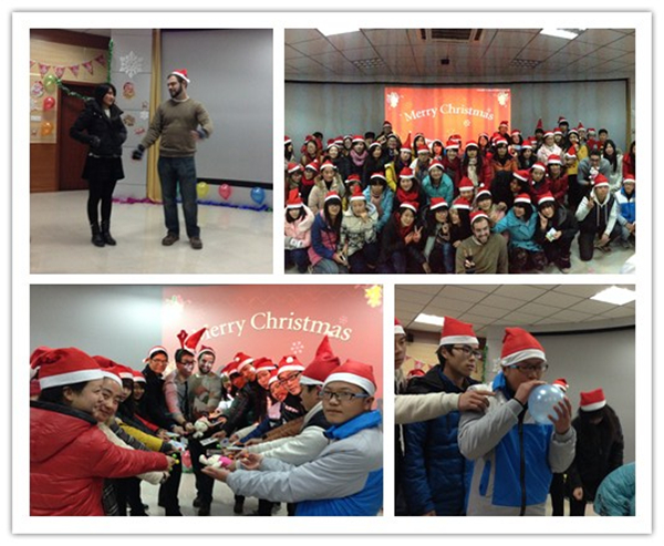 同学们与外籍教师们一同参加了“传气球”、“传递娃娃”、“吃饼干”等趣味游戏活动,还为外籍教师们精心准备了圣诞礼物,让他们在异国他乡也感受到家的温暖。
