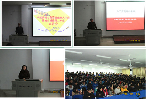 会上,郭湘如以《为了更美好的未来》为主题,向电子信息系2013级全体同学生动而精彩地讲述了营销与策划专业和电子信息专业相结合的诸多优势,并通过学院2009届毕业生成诚的成功创业经历说明了掌握复合技能对于就业创业的重要作用。