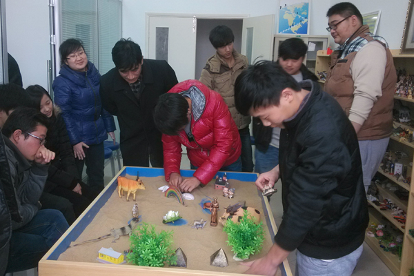 箱庭体验活动是一种心理游戏,参与者在所营造的“自由和保护的空间”气氛中,把沙子和玩具运用在富有创意的意象中,通过意象和场景来表达自己,直观显示内心世界。