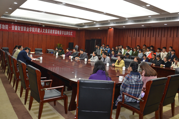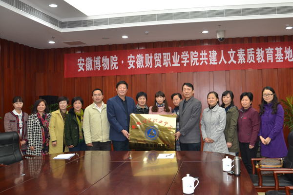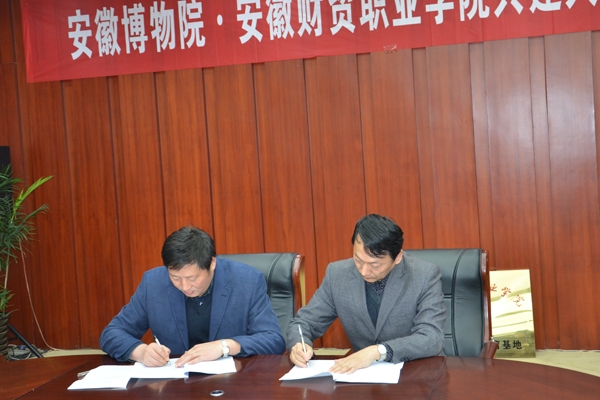 11月14日上午,学院与安徽博物院共建“大学生素质教育基地”签约挂牌仪式在安徽博物院举行。安徽博物院副院长邓峰与学院党委书记孙永代表双方签署了《安徽博物院•安徽财贸职业学院共建人文素质教育基地协议书》,并为“大学生素质教育基地”牌匾揭彩。双方将通过建设大学生素质教育基地,共同实施保护文化遗产、传承中华文明、人文素质培养工程。