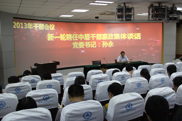 8月26日,学院召开新一轮聘任中层干部集体廉政谈话会,党委书记孙永代表党委对新一轮聘任中层干部进行了集体廉政谈话。
