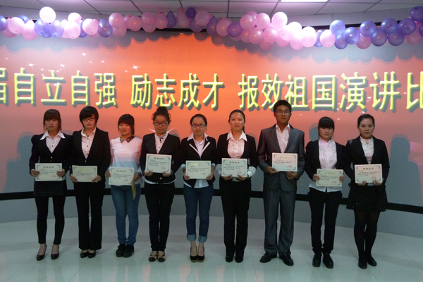 来自6个院系选拔推荐的17名参赛选手经过赛前的精心准备,在历时2个多小时的现场演讲中,内容紧扣主题、联系自身,声情并茂地讲述了自立自强、励志成才、报效祖国的拳拳之心,现场掌声阵阵,气氛热烈。经过激烈的角逐, 9名选手胜出获奖:工管1201班汤华美获得一等奖;国商1201班潘媛媛、证券1201班方夏威、商英1201班张瑜获得二等奖;能源1201班汪金秀,农金1201班潘爱红,审计1203班韩思华、丰利梅(组合),营销1202班邓玉娴,商英1203班范雅清获得三等奖。基础部主任王静为本次比赛作了精彩的点评,学生处处长薛卫敏为获奖选手颁发了荣誉证书和奖金。