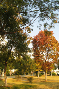 十年树木。随着新校区落成的十年,校园中的树也逐渐成才。大多树木的躯干虽算不上高大挺拔,但已各自成趣了。从它们的身上,正映衬了学院发展壮大的勃勃生机。