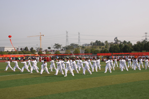党委书记孙永代表学院向大会的召开表示热烈的祝贺,并希望全体参赛运动员赛出成绩,赛出水平,赛出道德风尚,赛出团结友谊,取得运动成绩和精神文明的双丰收。裁判员代表桑磊、运动员代表财税金融系刘子健分别作了宣誓。开幕式上还进行了军体操和武术表演。