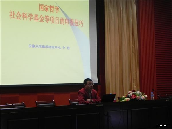 10月24日下午,安徽大学徽学研究中心主任历史学博士卞利教授应邀来我院向广大教师讲解社会科学基金等项目的申报,科研处副处长席清才主持讲座。