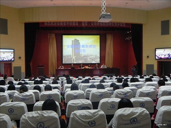 省外经建设(集团)副总裁、安徽外经戴斯酒店总经理沈逢梅女士率领宣讲团队,通过制作精美的公司宣传片向与会同学生动地介绍公司雄厚的实力、骄人的业绩和公司良好发展规划,并展示了富有发展空间和吸引力的职位;安徽金孔雀温泉旅游度假村相关负责人员组成阵容强大的宣讲团向同学们介绍了该度假村的相关情况,特别是现任安徽金孔雀温泉旅游度假村总经理助理、我院1998级学生李婷的演讲更是博得了同学们阵阵热烈的掌声。会后,有近百名同学表达了就业意向,有意接受企业抛出的橄榄枝。