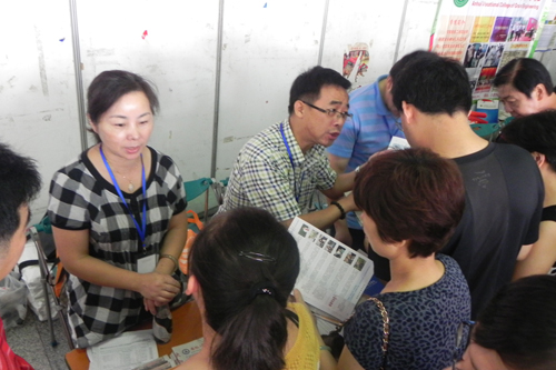 从上午7:30开始,前来我院展位咨询的考生和家长络绎不绝。我院各位老师从学院的办学历史、教育教学管理、学生管理、学院特色专业及今年学院的录取方式等多方面,向考生和家长进行了详细的介绍。前来咨询的考生及家长对我院的热情服务和耐心讲解感到非常满意,许多家长纷纷表示把孩子送到这所具有人文关怀、并拥有雄厚师资力量和良好人才培养质量的大学非常放心;许多考生则表示报考我院正是他们心中的向往,更是他们在填报志愿的第-选择。