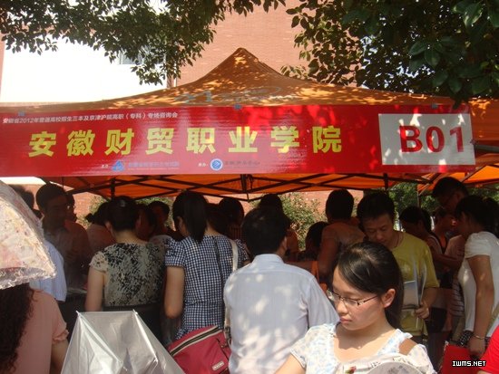 时序七月,虽然酷暑难当,却是学院2012年的招生咨询工作的关键阶段,各类招生咨询会及新生录取工作正在如火如荼开展。在学院先后派员参加了合肥、阜阳等地举办的数场中招、高招咨询会后, 7月21日,胡戴新副院长率招生就业处、国际交流中心、大位会计学院、雪岩贸易学院、行知管理学院、财税金融系、旅游管理系和电子信息系的相关负责同志,参加了由安徽省教育招生考试院在安徽新华学院举办的2012年三本及京津沪皖高职(专科)专场咨询会。期间,学院党委孙永书记在办公室负责同志的陪同下亲临咨询现场看望并慰问了奋战在招生咨询一线的工作人员,送来了学院领导的亲切关怀。
